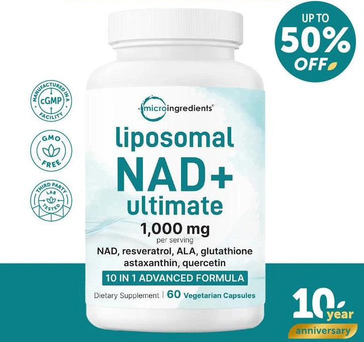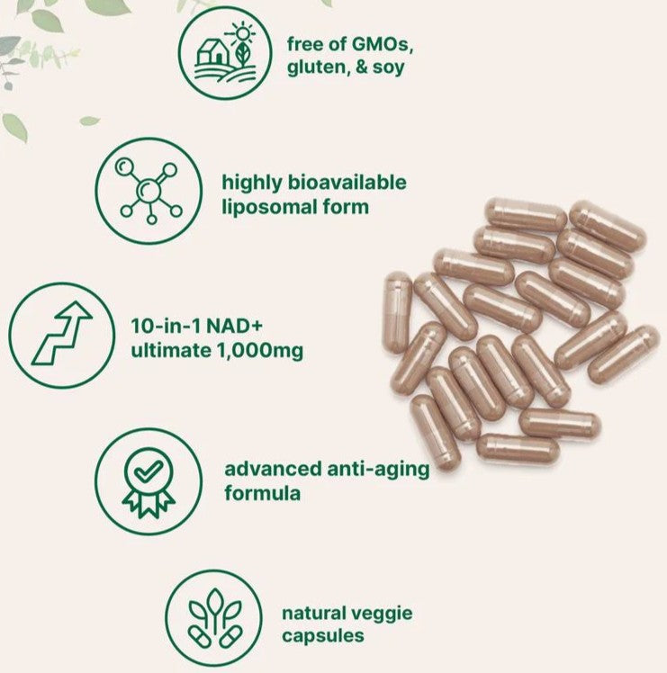 This advanced 10-in-1 formula combines liposomal NAD+ with a refined selection of antioxidants and plant-based compounds to support everyday wellness. Designed using liposomal delivery technology for improved absorption, it comes in vegetarian capsules and is manufactured to high quality standards for dependable, daily nutritional use.